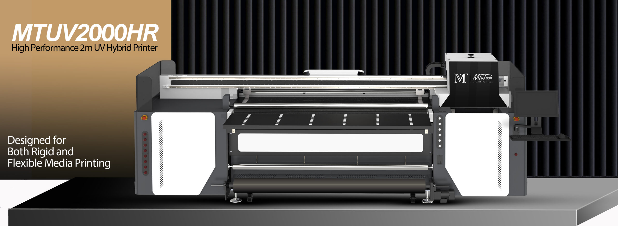 The MTuTech MT-UV2000HR is a high-performance, heavy-duty hybrid UV printer engineered for both rigid and flexible media, as well as a broad range of custom promotional items. This advanced system integrates cutting-edge technologies to deliver vibrant, precise, and reliable print results for demanding, high-volume environments.