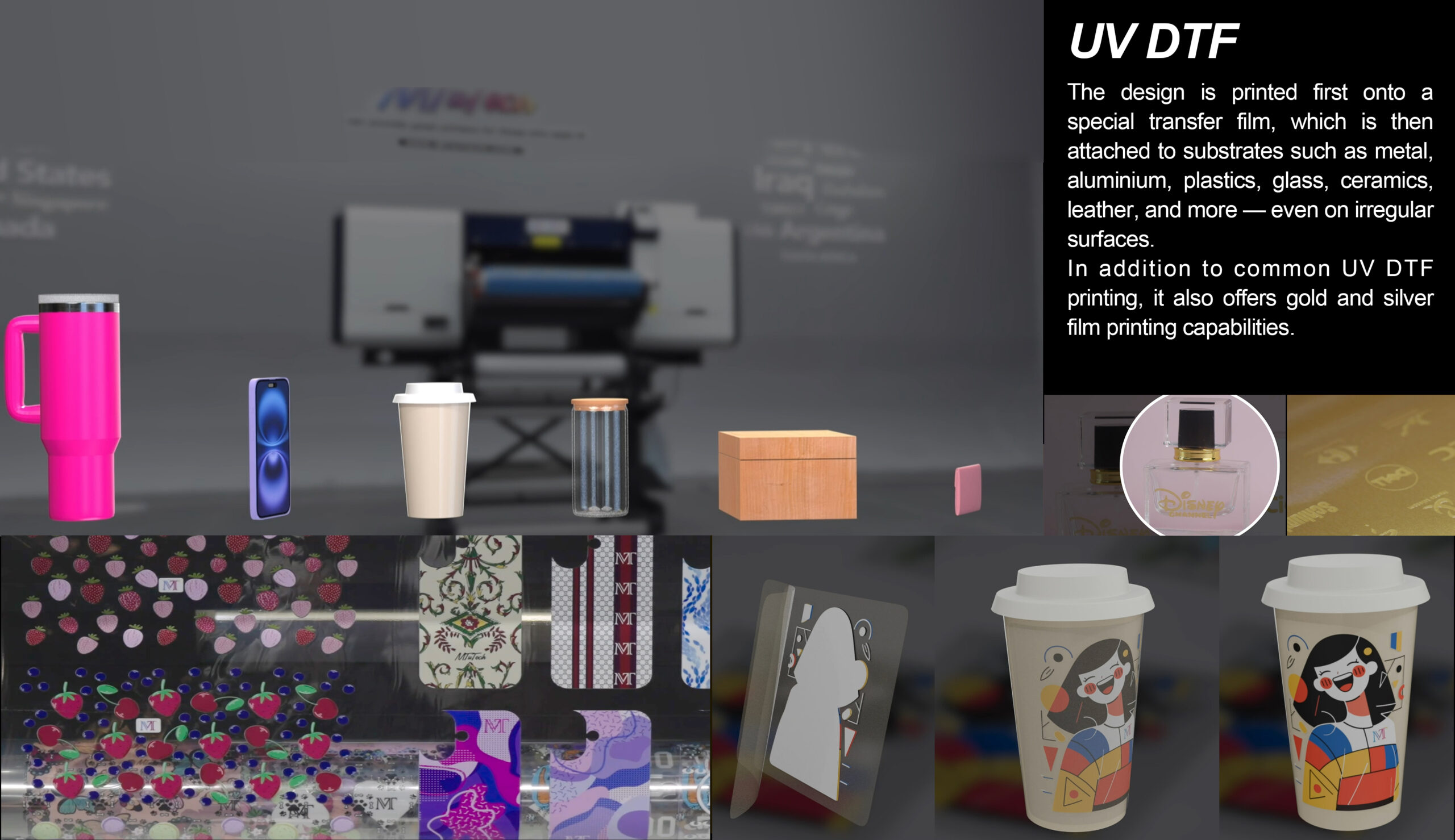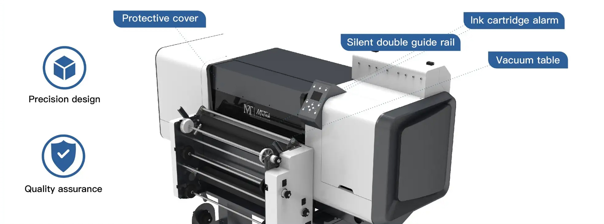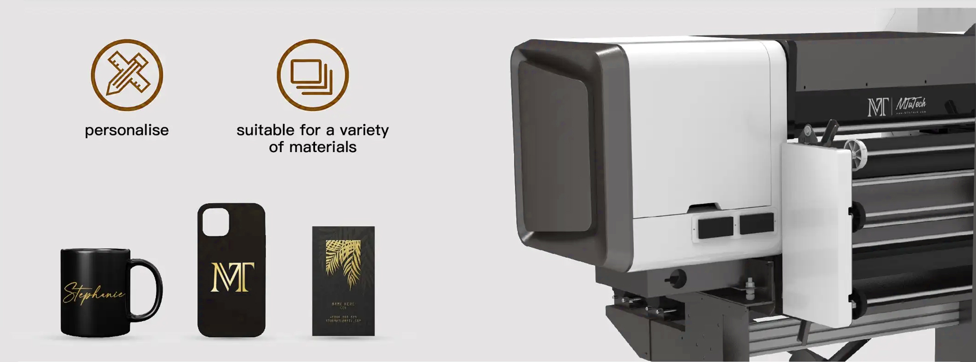 With features like integrated winding, ink stirring, filtering, and intelligent control panel operation, the MTuTech UV DTF60 simplifies workflow while saving time and labour. It also provides options for hot stamping or silver/gold foil effects, making it highly flexible for personalised branding, promotions, or product customisation.