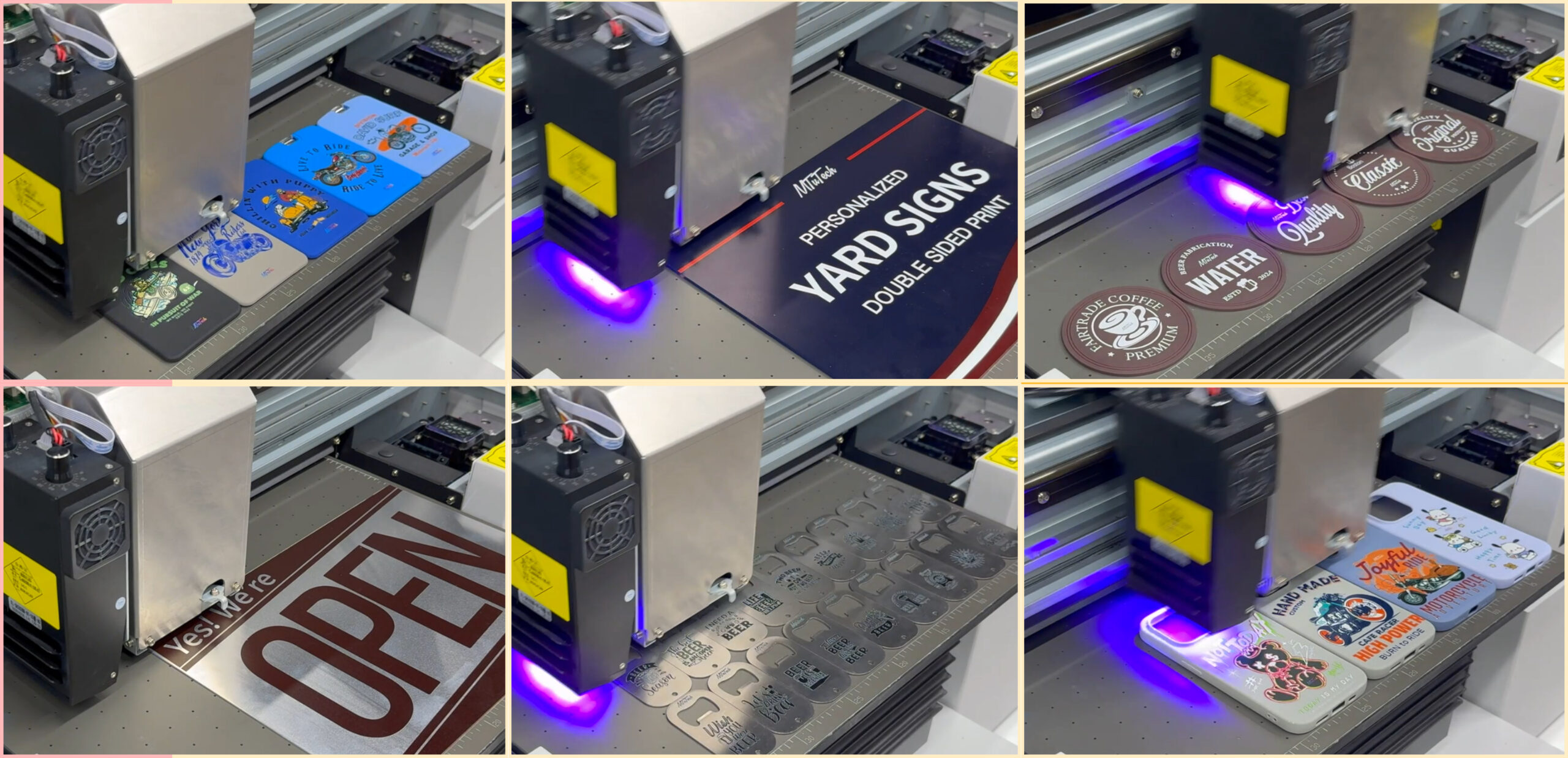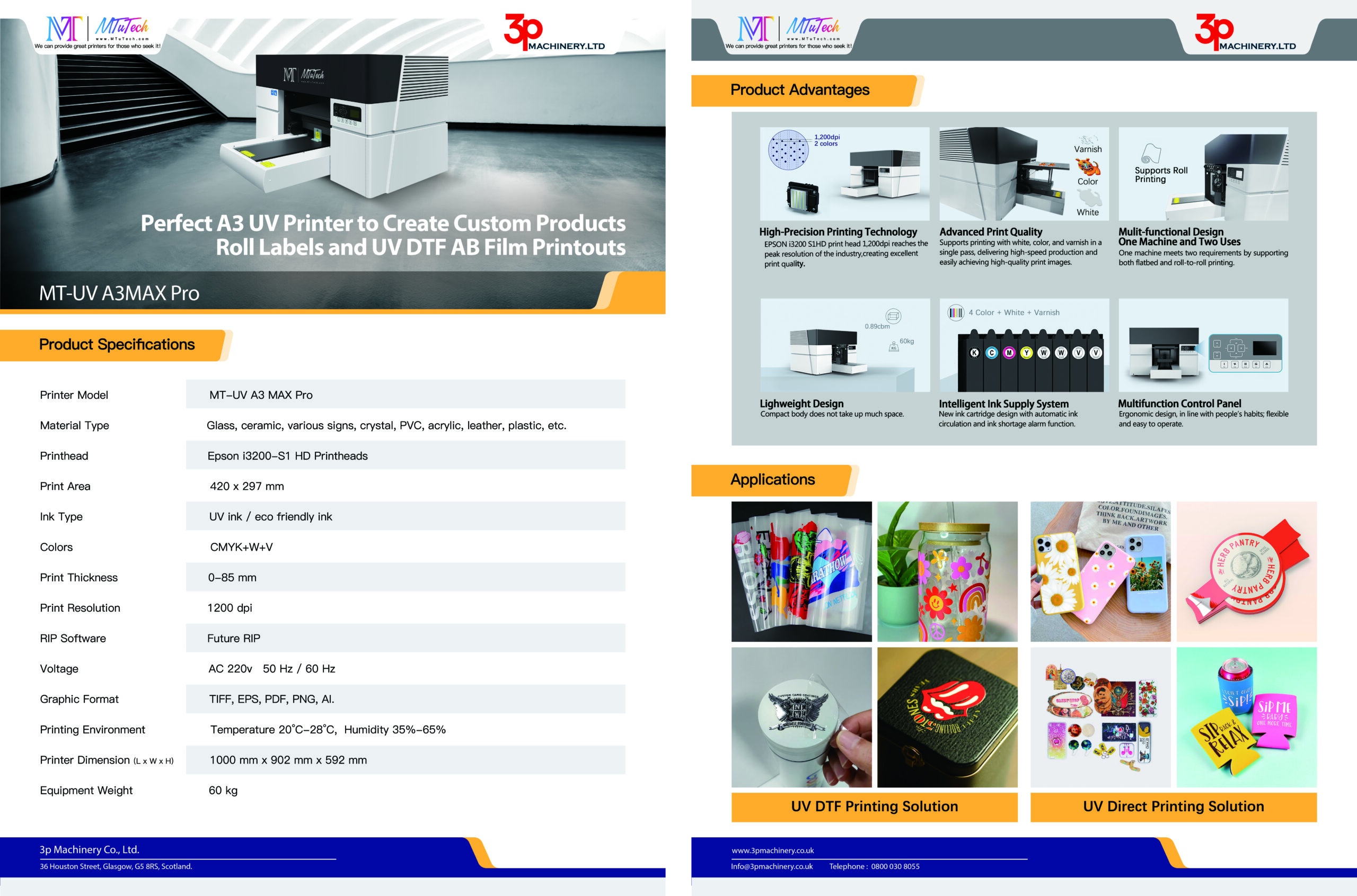 Ideal for short to medium production runs of promotional merchandise, personalised gifts, industrial parts, and bespoke items such as phone cases, keyrings, mugs, tiles, and more, the MT-UV A3Pro combines exceptional resolution, adaptability, and a compact footprint. This makes it a true problem solver for a wide range of UV printing requirements across creative, commercial, and industrial settings.