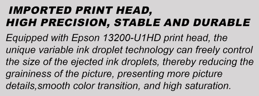 It adopts silent double guide rails, which is noise-free and highly durable.The air suction platform design can make the roll printing flat and ensure the continuity and stability of the printing process.