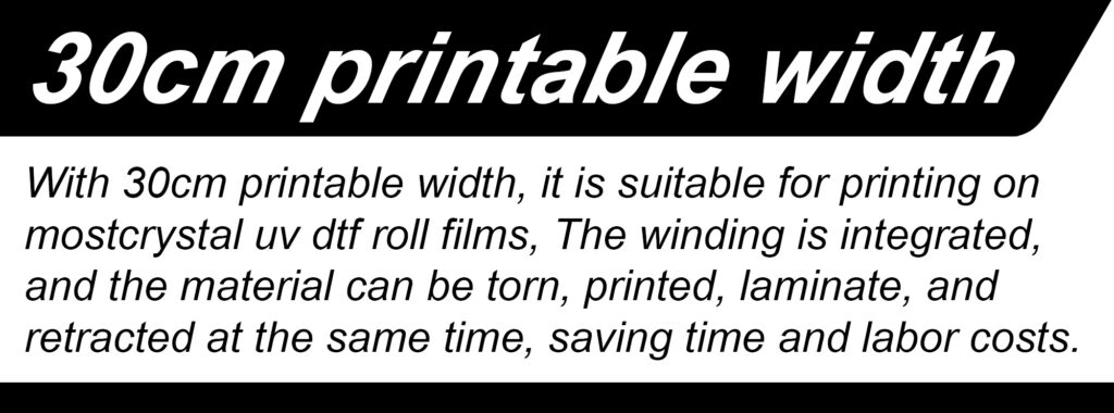 30cm print width, suitable for most crystal UV DTF roll films