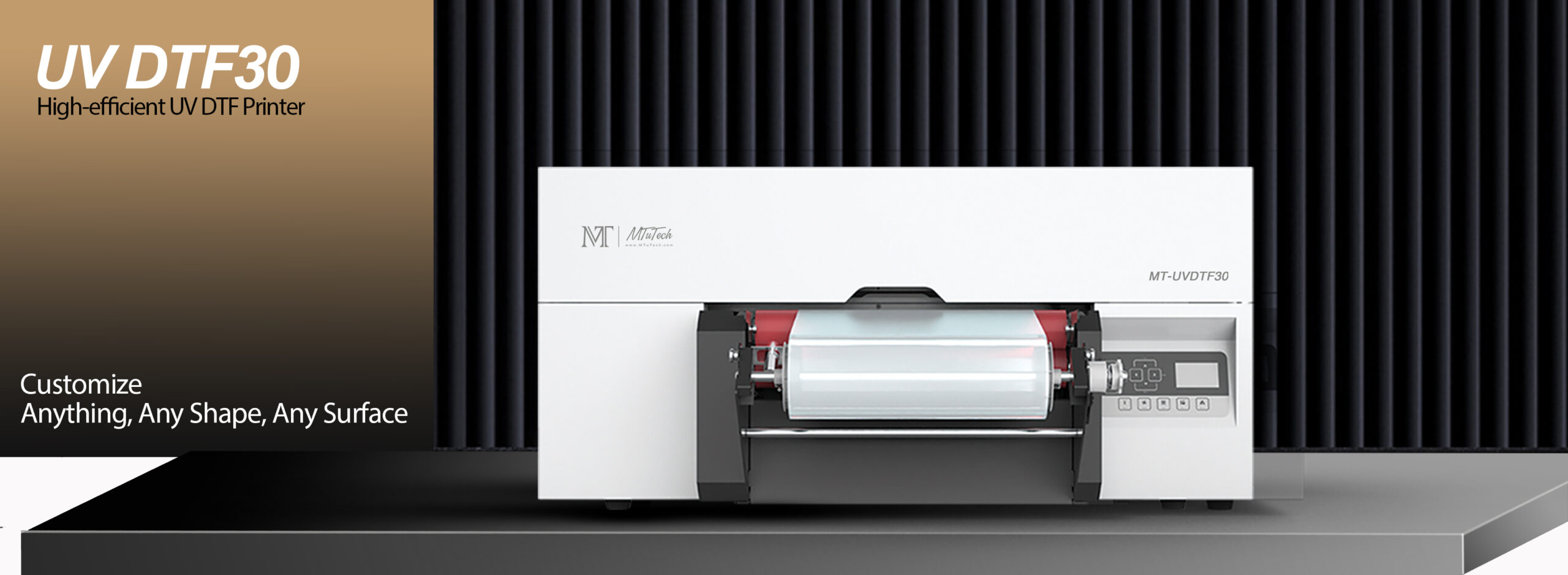 The MT UV DTF 30 is a compact and powerful 30cm-wide UV Direct-to-Film printer designed for high-quality, versatile printing and lamination in one step. It features automatic ink supply with white and varnish stirring and circulation for consistent output, and an integrated air cooling system to maintain optimal printing temperature. The printer supports simultaneous printing and laminating onto specialised transfer film, enabling vivid, durable designs that can be transferred onto surfaces like plastics, metals, and boards, even on irregular shapes.